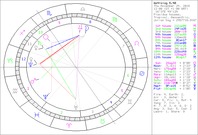 Jupiter ve Vahách dbá na spravedlnost, uznává morální zásady, zákony, životní filozofie je postavena na harmonické společnosti. Zajištěna je tak spravedlnost včas a pro každého bez rozdílu, tak, jak je přislíbeno v deklaraci realistů. Luna ve Vahách je svým založením humanitního charakteru a týmovým hráčem. Bránit blaho země a blaho národa je dle deklarace také cílem realistů. Péče o národní bohatství, jako krajina, kulturní dědictví a lidé, kteří zde žijí, už jen dokreslují širokou konjunkci Jupiter Luna. Potřeba ochrany jedinečných hodnot dává perspektivu dalším pokolením.